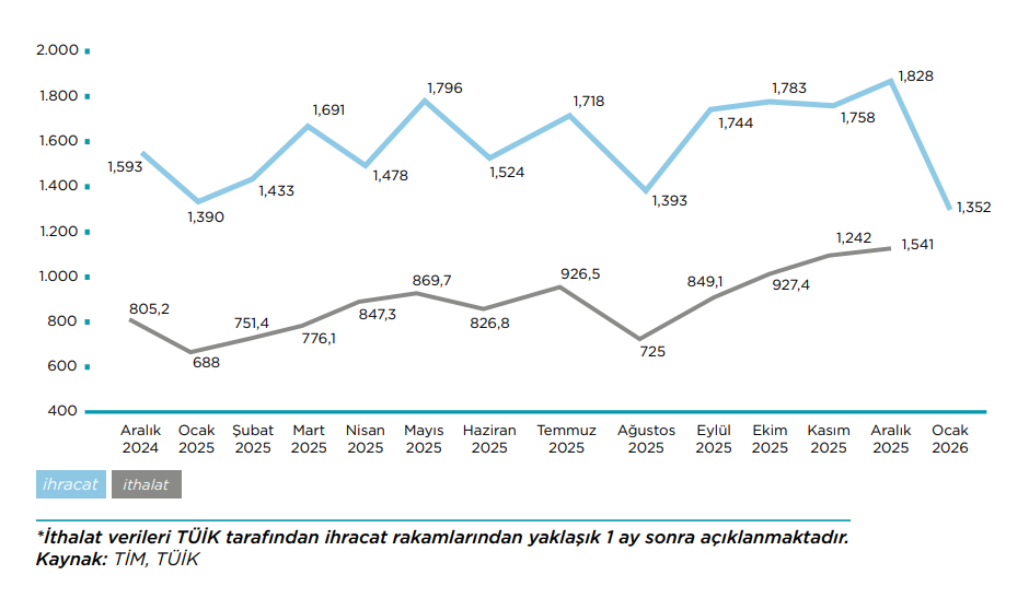 2026 yılı Ocak ayında geçen yılın aynı dönemine göre;