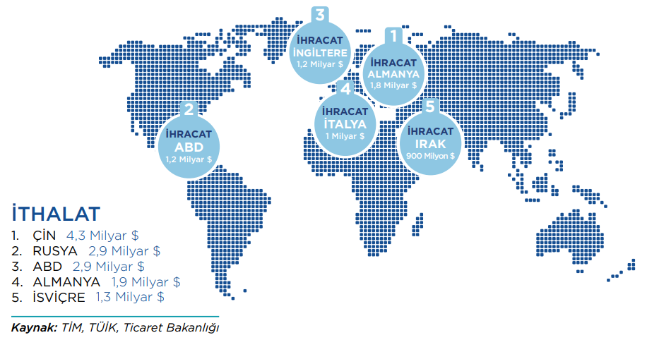 Bursa’nın ilk 5 ülkeye yaptığı 576 milyon dolarlık ihracat toplam Bursa ihracatının %42,5’ine karşılık gelmektedir.