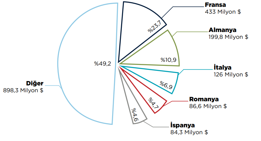 Bursa’nın ilk 5 ülkeye yaptığı 929,7 milyon dolarlık ihracat toplam Bursa ihracatının %50,8’ine karşılık gelmektedir.